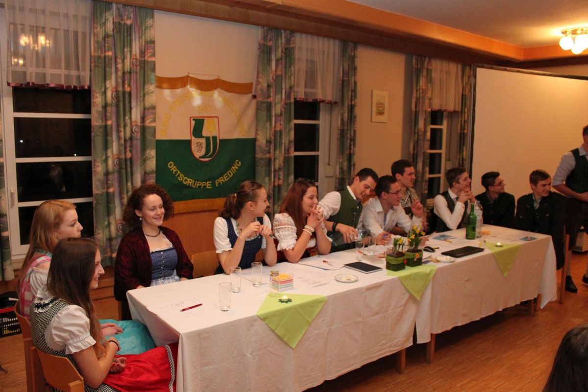 Am 24. Jänner 2015 fand die alljährliche Generalversammlung der Landjugend Preding-Zwaring-Pöls im Pfarrheim statt. Heuer wurden Ergänzungswahlen durchgeführt und ein junger, engagierter Vorstand gewählt. Die vielen unterschiedlichen Aktivitäten der Ortsgruppe wurden in einem Film präsentiert. Zu den Ehrengästen zählte unter anderem die erste Landesleiterin der Steiermark, Ökonomierätin Maria Stangl. Weiteres wurde unser LJ- Opi Franz Lambauer altersbedingt in den „Ruhestand“ verabschiedet. Unter der Führung von Obmann Mario Habersack und Leiterin Stefanie Sagmeister startet die Landjugend Preding-Zwaring-Pöls mit viel Schwung ins Jahr 2015. Der neue Vorstand setzt sich wie folgt zusammen: Obmann Habersack Mario