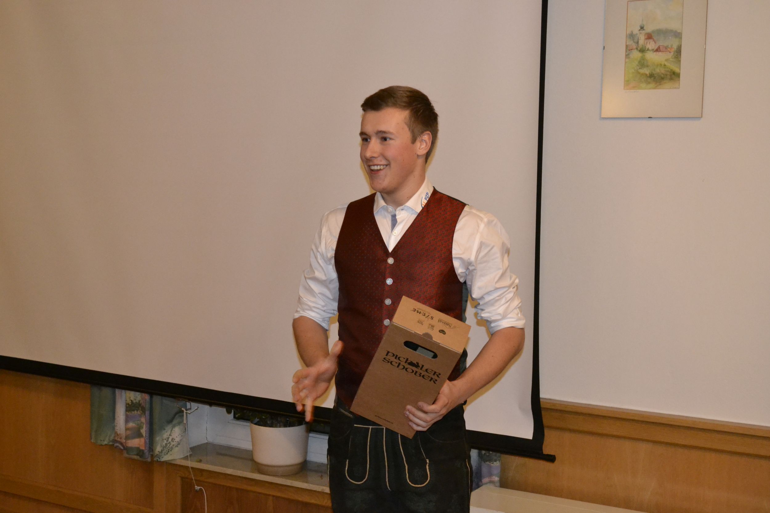 Weiters mussten wir zwei treue und aktive Mitglieder aus der Landjugend verabschieden: Martin und Sophie Kappel. Vor allem Martin war ein langjähriges, sehr engagiertes Mitglied in der Ortsgruppe und deren Vorstand, doch auch im Bezirksvorstand und im Landesvorstand der Landjugend Steiermark. Im Team mit Sophie konnte er außerdem viele bezirks-, landes- und sogar bundesweite Erfolge erzielen, worauf wir sehr stolz sind. Wir wünschen den beiden alles Gute auf ihrem gemeinsamen Lebensweg als Familie, die nach ihrer Hochzeit im Mai bald um ein Mitglied reicher ist. Natürlich seid ihr weiterhin jederzeit herzlich willkommen in der Landjugend Preding-Zwaring-Pöls und wir hoffen, ihr könnt euren Nachwuchs in 15 Jahren auch dazu begeistern. Vielen Dank für eure Arbeit, Unterstützung und vor allem eure Freude an der Landjugend!
